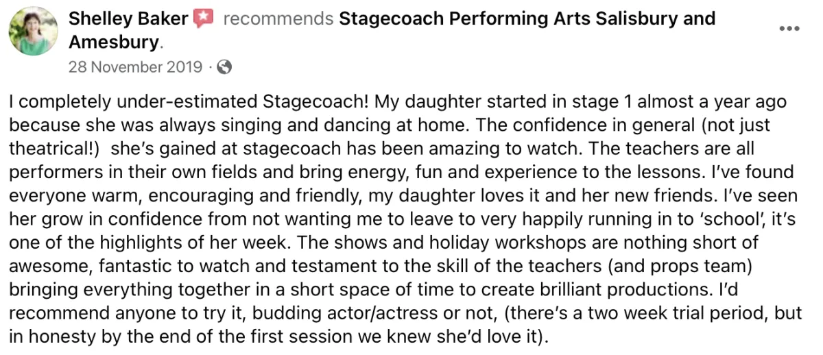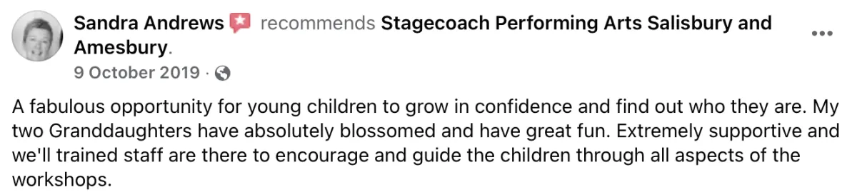 Develop their skills and confidence: By taking part in the classes and activities, your child will develop their skills and gain confidence in their abilities, which will help them excel both on and off the stage.